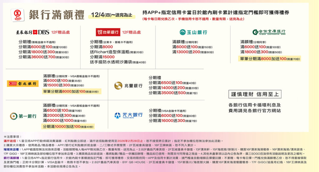 指定銀行刷卡 滿額好禮再加碼