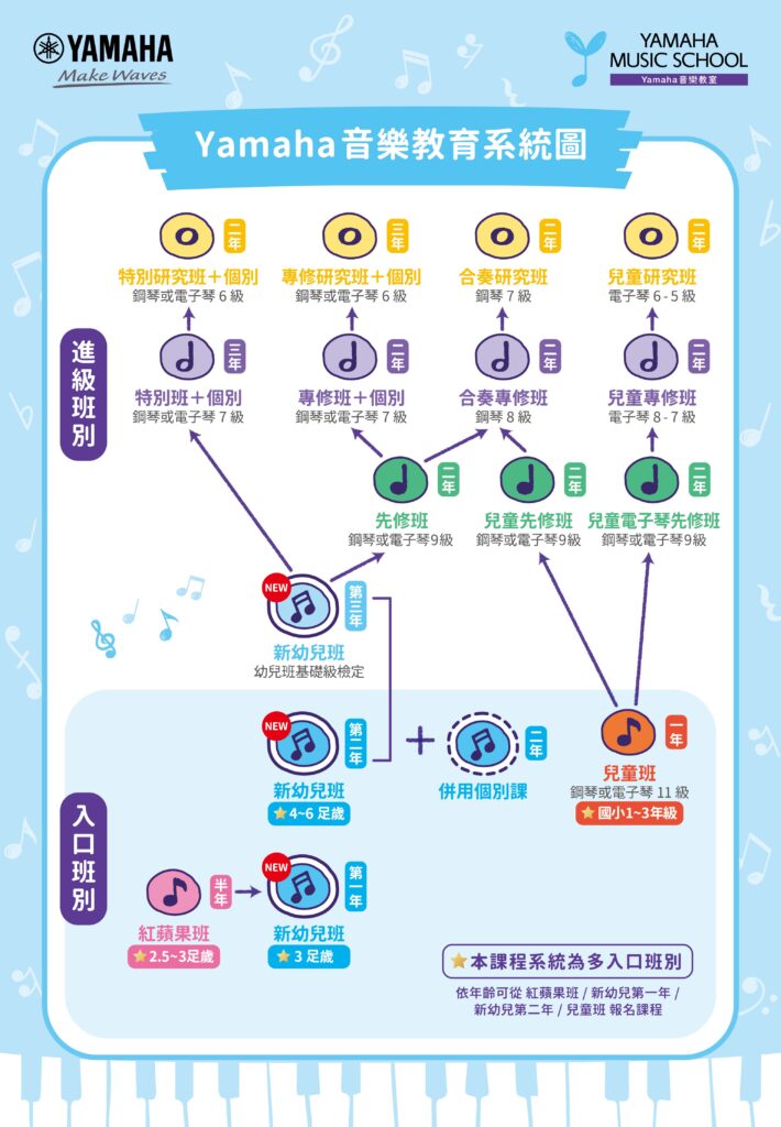 Yamaha音樂教室遍布全球四十餘國,1,600多個教室,依據孩子年齡及身心發展,以系統化教學培養孩子培養聽、唱、彈等綜合性音樂能力,提昇孩子的專注力!